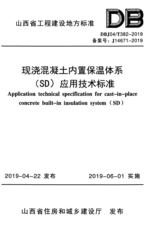 标准介绍:DBJ04/T 382-2019 现浇混凝土内置保温体系(SD)应用技术标准qio免费标准库