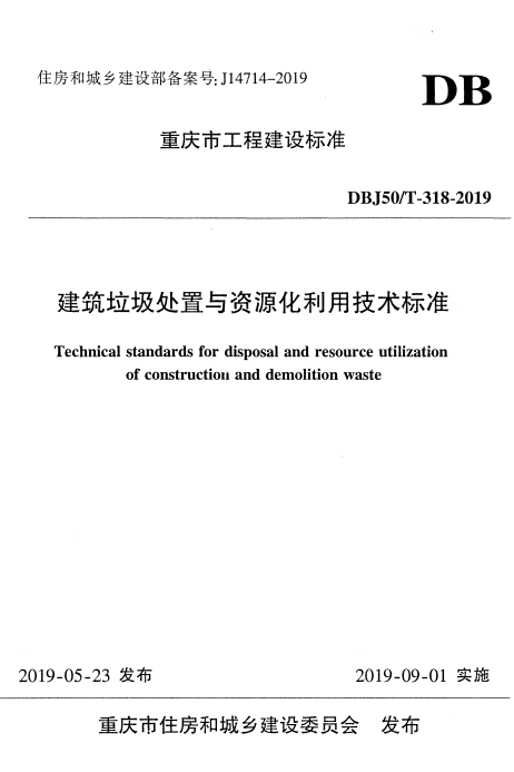 标准介绍:DBJ50/T 318-2019 建筑垃圾处置与资源化利用技术标准dFe免费标准库
