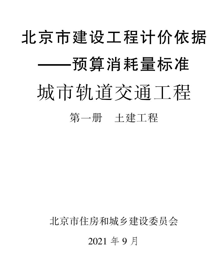 标准介绍:北京市2021年建设工程计价依据——预算消耗量标准 城市轨道交通工程 共七册fkE免费标准库fkE免费标准库北京市2021年建设工程计价依据——预算消耗量标准 城市轨道交通工程 共七册fkE免费标准库北京市建设工程计价依据 -预算消耗量标准 城市轨道交通工程 第一册 土建工程