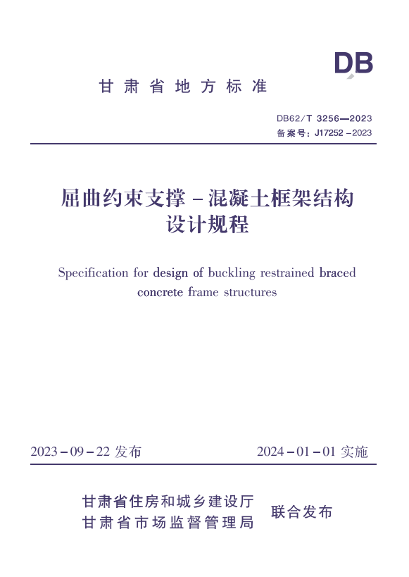 标准介绍:DB62/T 3256-2023 屈曲约束支撑-混凝土框架结构设计规程