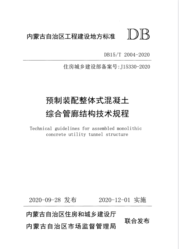 DB15/T 2004-2020 预制装配整体式混凝土综合管廊结构技术规程x3m免费标准库