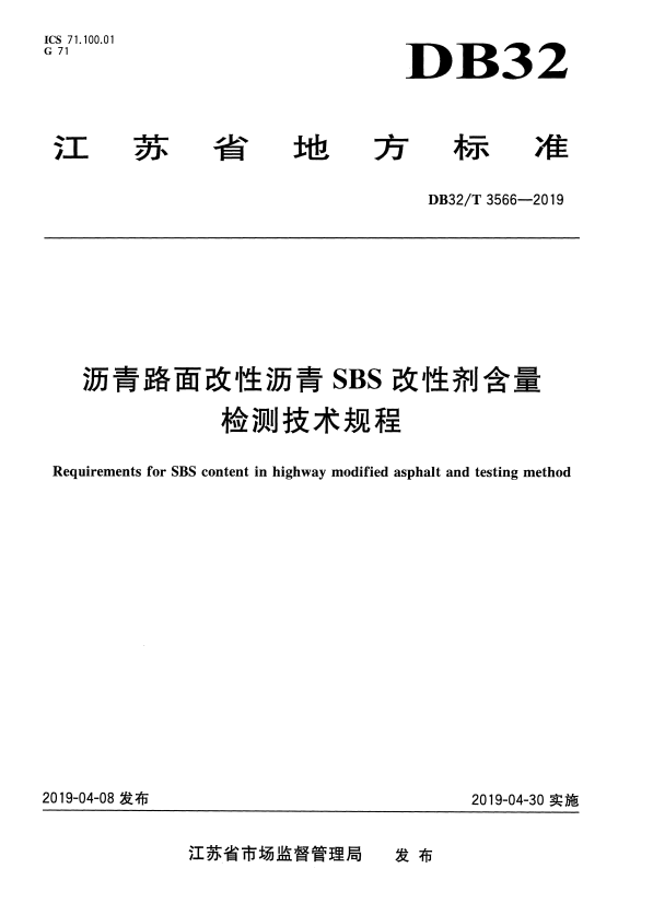 标准介绍:DB32/T 3566-2019 沥青路面改性沥青SBS改性剂含量检测技术规程