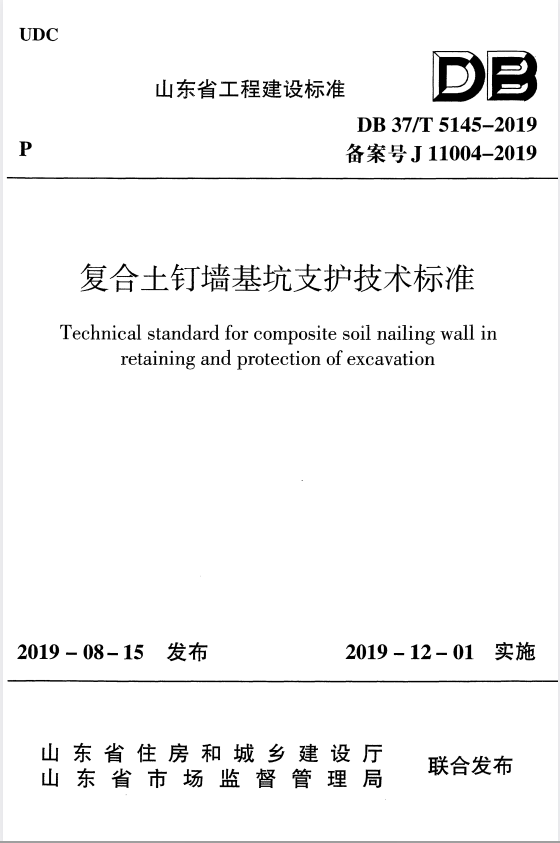 标准介绍:DB37/T 5145-2019 复合土钉墙基坑支护技术标准