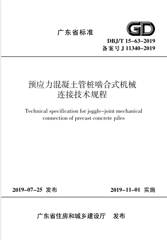 标准介绍:DBJ/T 15-63-2019 预应力混凝土管桩啮合式机械连接技术规程