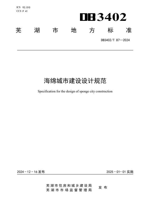 标准介绍:DB3402/T 87-2024 海绵城市建设设计规范