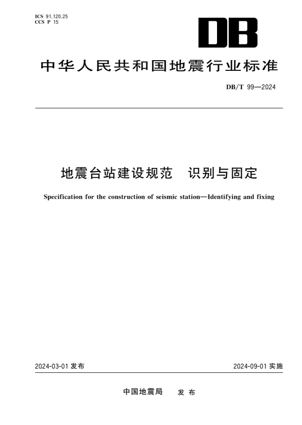 标准介绍:DB/T 99-2024 地震台站建设规范 识别与固定