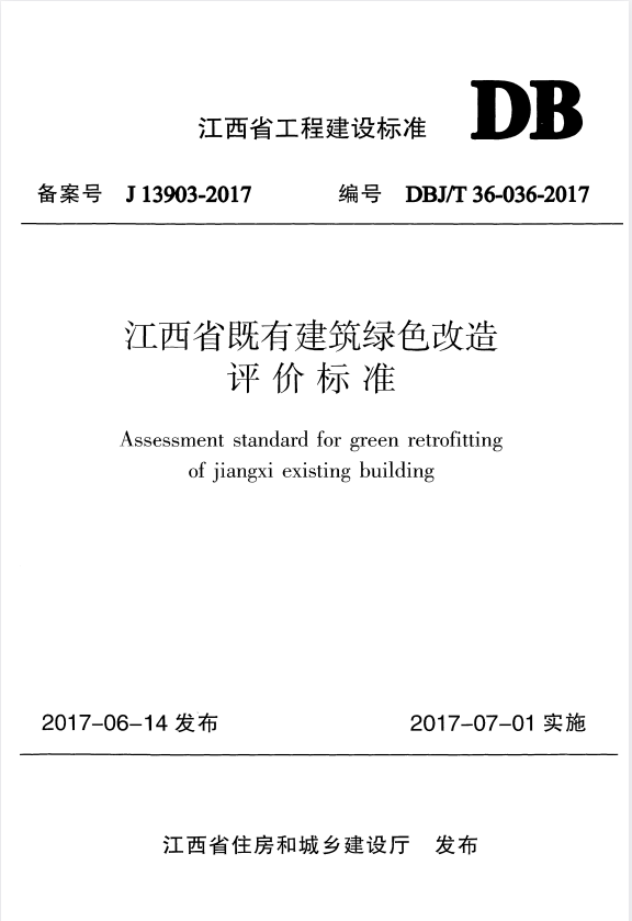 DBJT 36-036-2017 江西省既有建筑绿色改造评价标准T3Y免费标准库