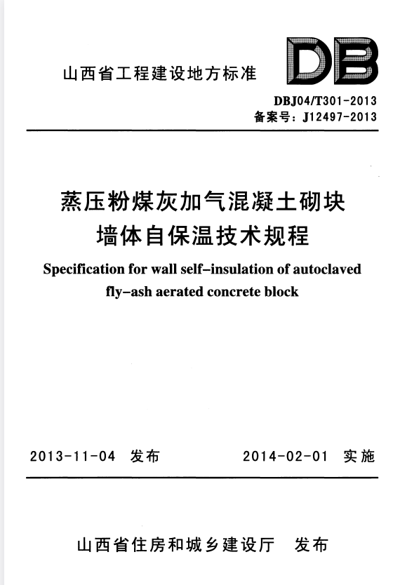 标准介绍:DBJ04/T 301-2013 蒸压粉煤灰加气混凝土砌块墙体自保温技术规程