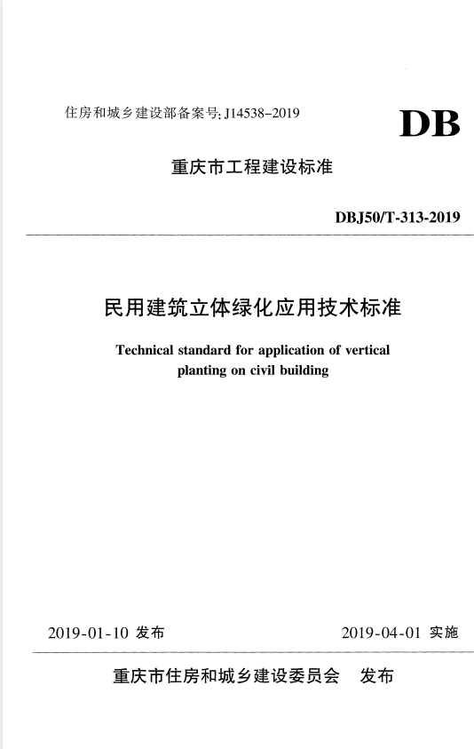标准介绍:DBJ50/T 313-2019 民用建筑立体绿化应用技术标准fXB免费标准库
