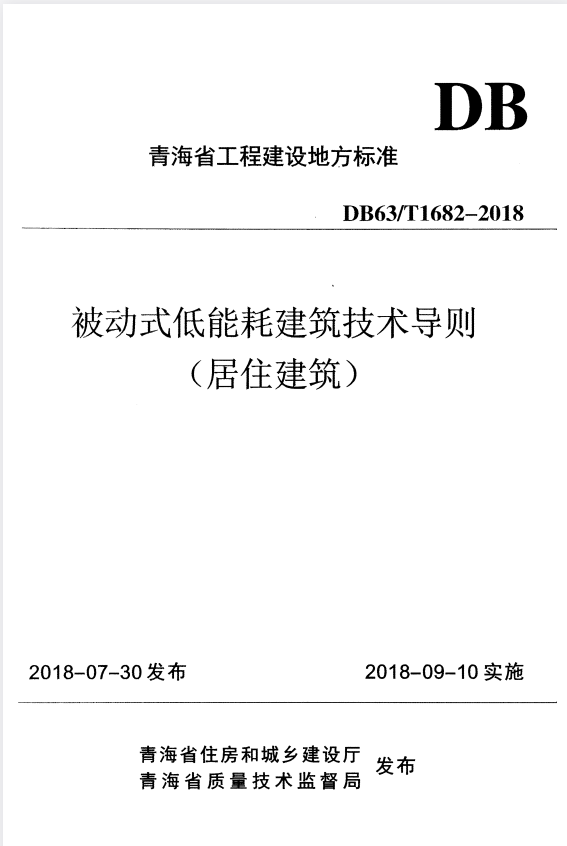 标准介绍:DB63/T 1682-2018 被动式低能耗建筑技术导则(居住建筑)724免费标准库