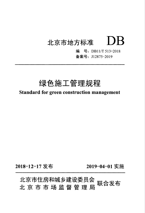 标准介绍:DB11/T 513-2018 绿色施工管理规程
