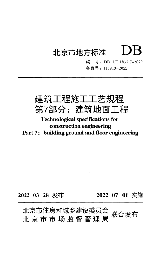 标准介绍:DB11/T 1832.7-2022 建筑工程施工工艺规程 第7部分:建筑地面工程 附条文说明