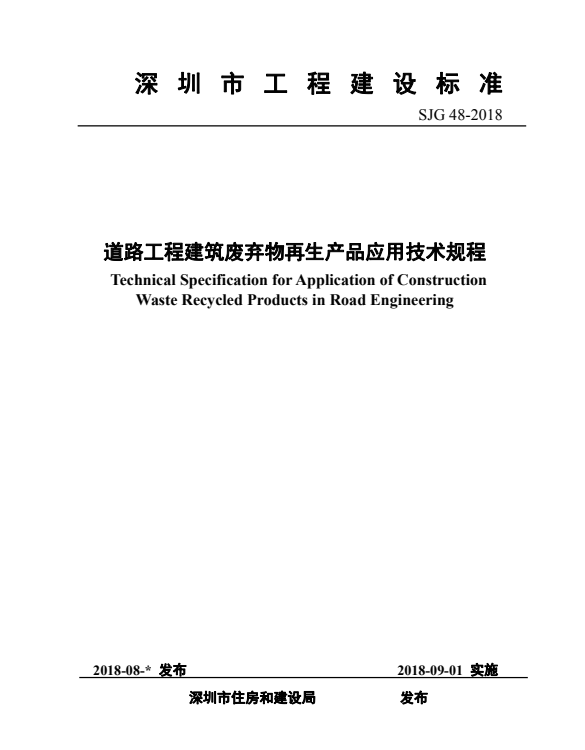 标准介绍:SJG 48-2018 道路工程建筑废弃物再生产品应用技术规程juw免费标准库