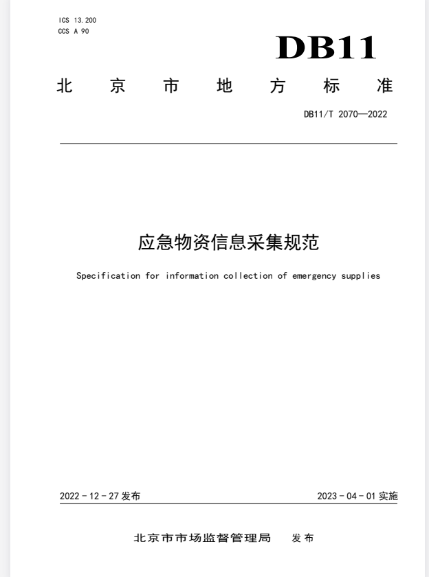 标准介绍:DB11/T 2070-2022 应急物资信息采集规范sIv免费标准库
