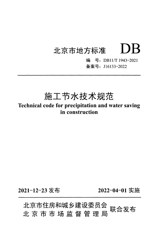 标准介绍:DB11/T 1943-2021 施工节水技术规范faq免费标准库