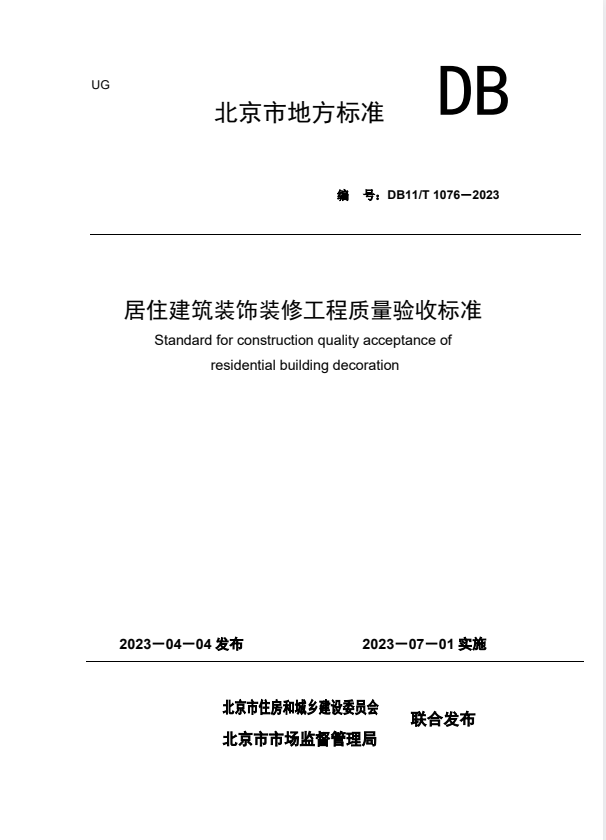 标准介绍:DB11/T 1076-2023 居住建筑装饰装修工程质量验收标准JUO免费标准库
