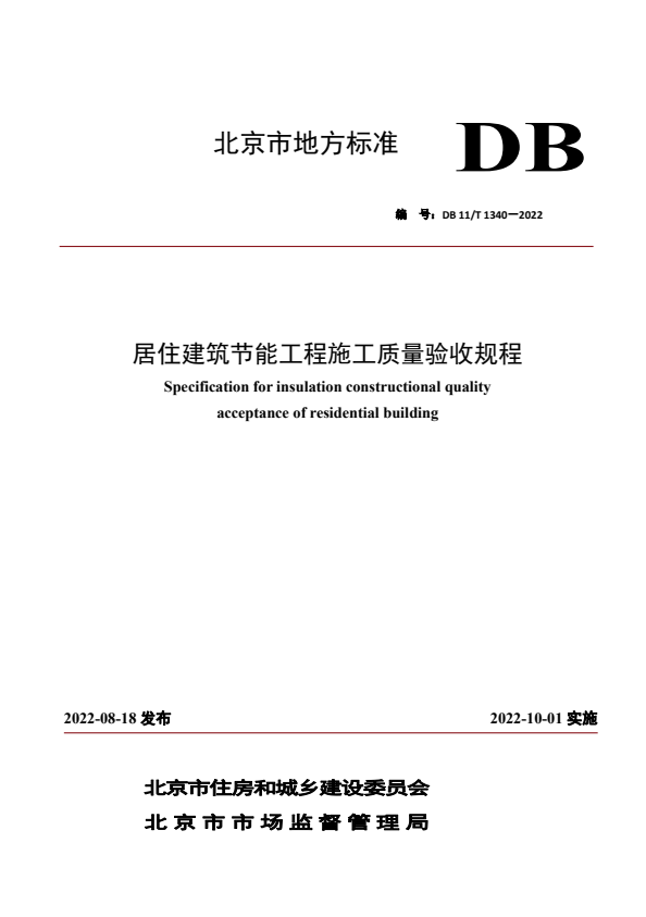 标准介绍:DB11/T 1340-2022 居住建筑节能工程施工质量验收规程