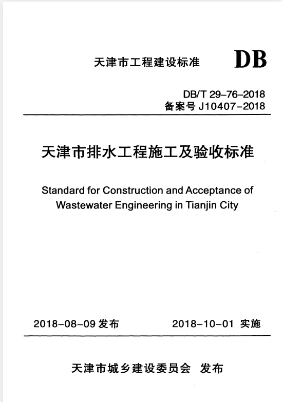 标准介绍:DB/T 29-76-2018 天津市排水工程施工及验收标准