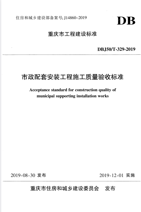 标准介绍:DBJ50/T 329-2019 市政配套安装工程施工质量验收标准l0j免费标准库