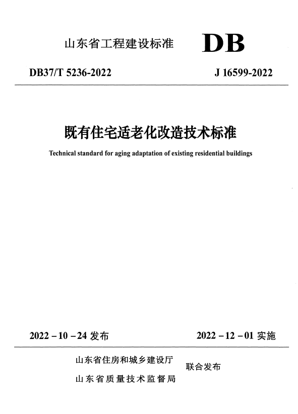 标准介绍:DB37/T 5236-2022 既有住宅适老化改造技术标准