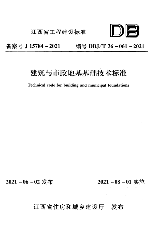 标准介绍:DBJ/T 36-061-2021 建筑与市政地基基础技术标准Bct免费标准库