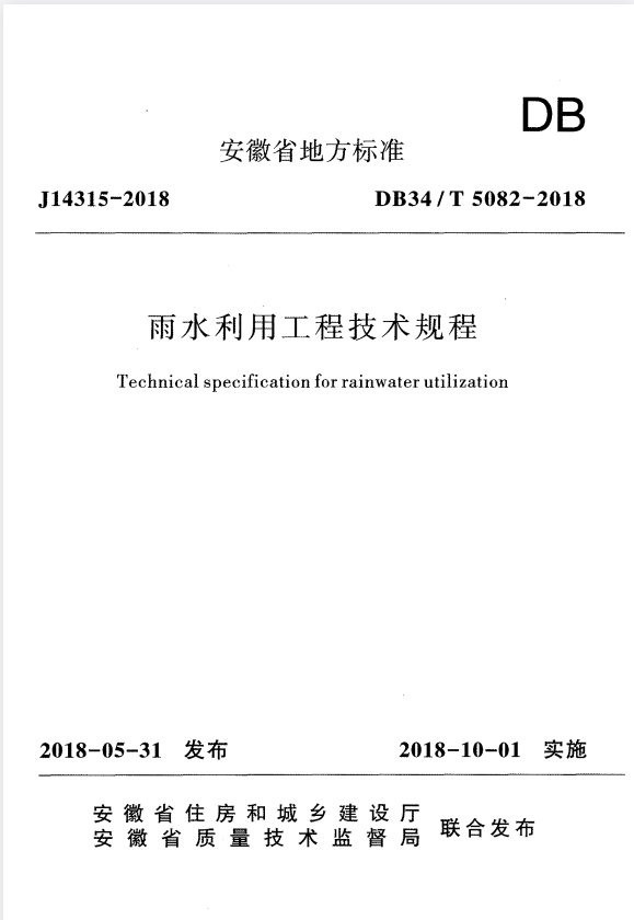 标准介绍:DB34/T 5082-2018 雨水利用工程技术规程5GB免费标准库