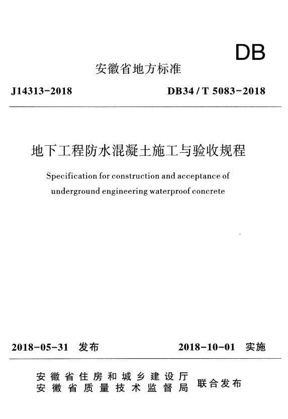 标准介绍:DB34/T 5083-2018 地下工程防水混凝土施工预验收规程KYX免费标准库