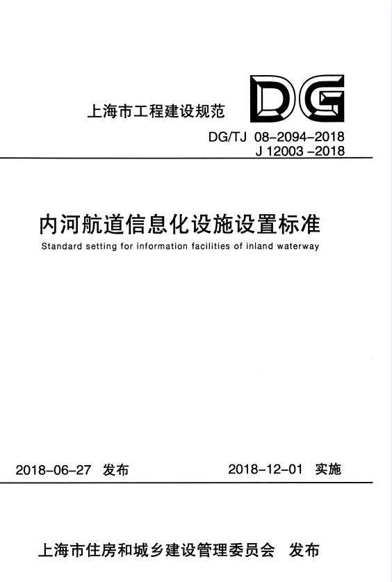 标准介绍:DG/TJ 08-2094-2018 内河航道信息化设施设置标准x2I免费标准库