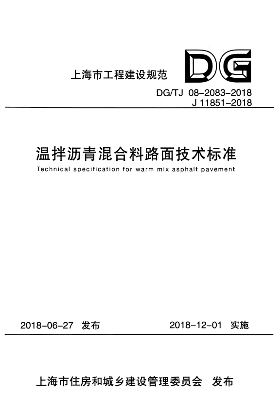 标准介绍:DG/TJ 08-2083-2018 温拌沥青混合料路面技术标准Vwj免费标准库