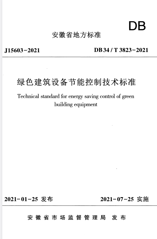 标准介绍:DB34/T 3823-2021 绿色建筑设备节能控制技术标准