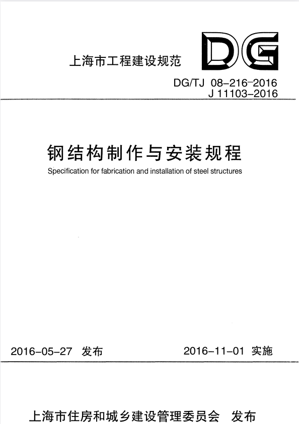 标准介绍:DG/TJ 08-216-2016 钢结构制作与安装规程nbU免费标准库