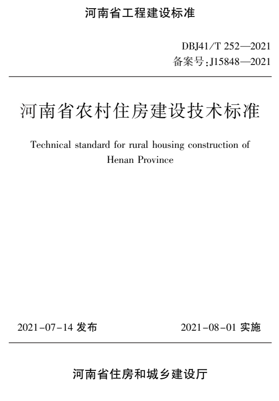 标准介绍:DBJ41/T 252-2021 河南省农村住房建设技术标准0A9免费标准库