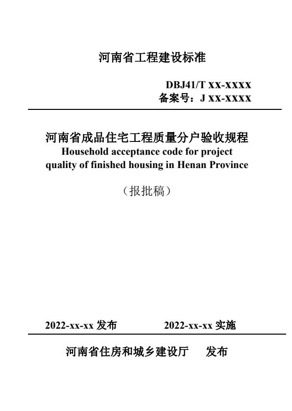 标准名称:河南省成品住宅工程质量分户验收规程
