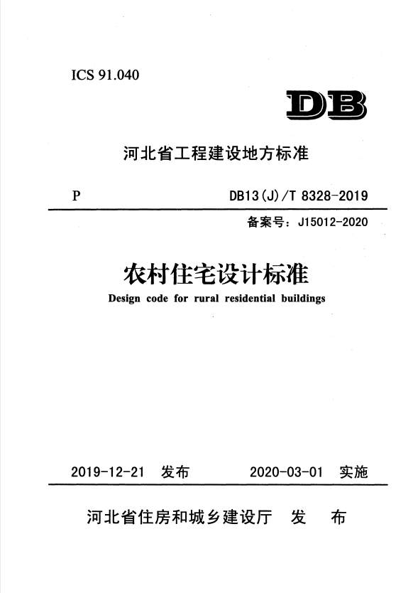 标准介绍:DB13(J)/T 8328-2019 农村住宅设计标准rp9免费标准库