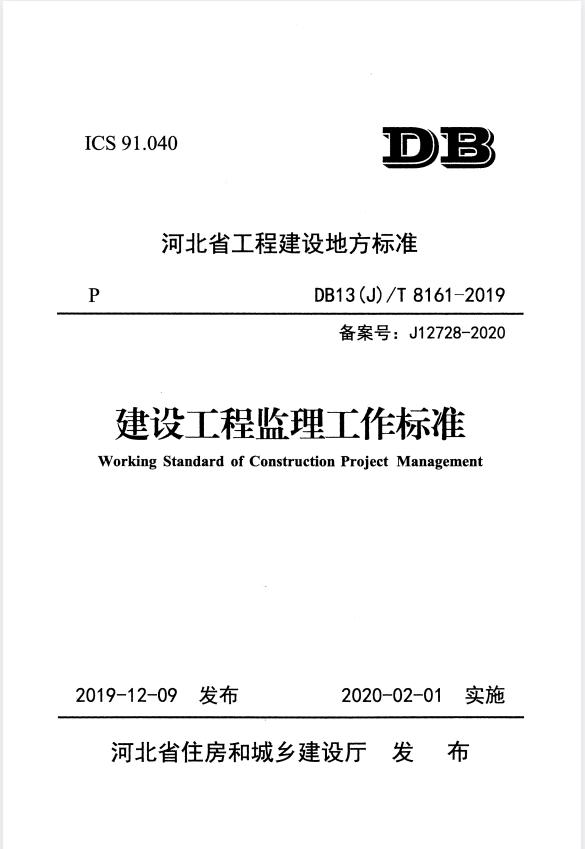 标准介绍:DB13(J)/T 8161-2019 建设工程监理工作标准rgJ免费标准库