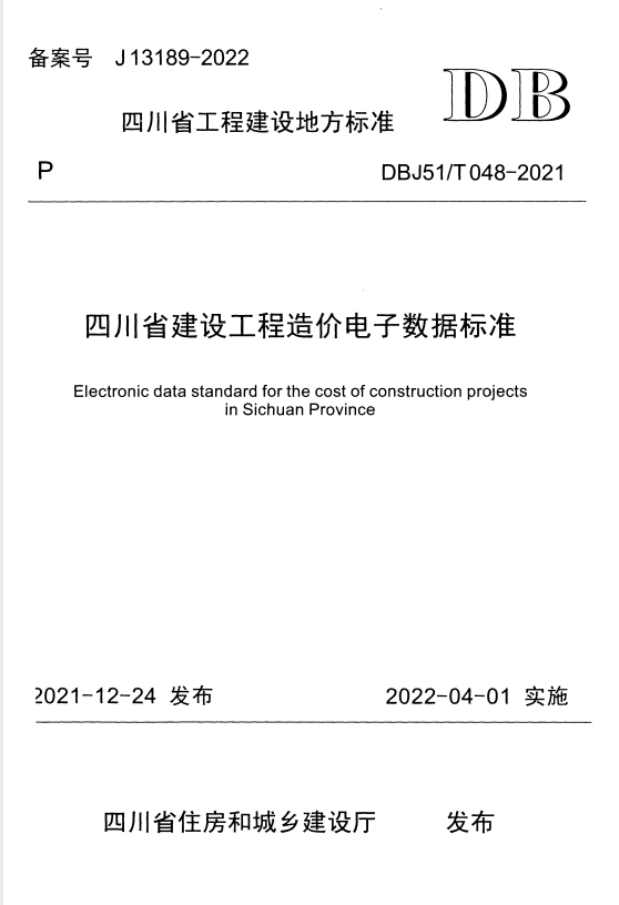 标准介绍:DBJ51/T 048-2021 四川省建设工程造价电子数据标准