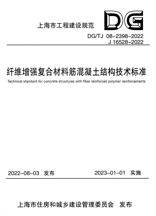 标准介绍:DG/TJ 08-2398-2022 纤维增强复合材料筋混凝土结构技术标准