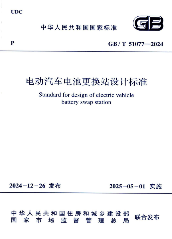 标准介绍:GB/T 51077-2024电动汽车电池更换站设计标准