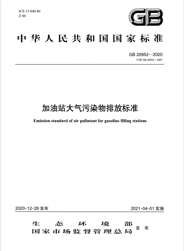 标准介绍:GB 20952-2020 加油站大气污染物排放标准