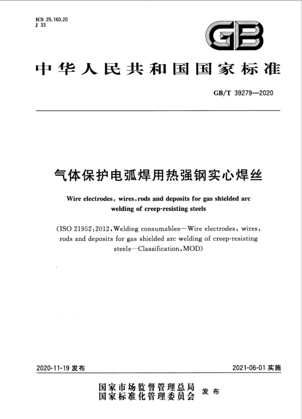 标准介绍:GB/T 39279-2020 气体保护电弧焊用热强钢实心焊丝