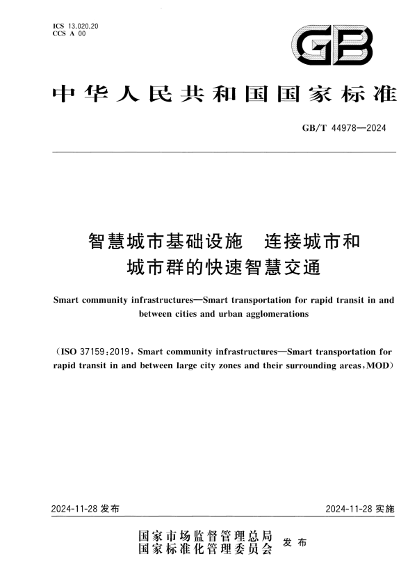 标准介绍:GB/T 44978-2024 智慧城市基础设施 连接城市和城市群的快速智慧交通