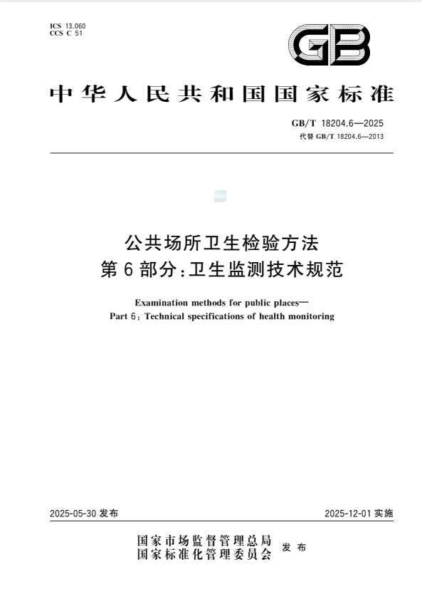 标准介绍:GB/T 18204.6-2025 公共场所卫生检验方法 第6部分:卫生监测技术规范