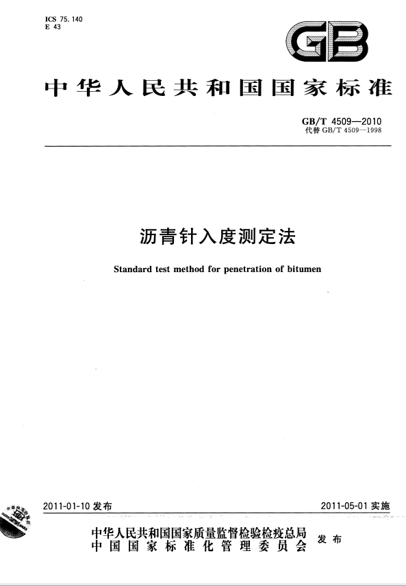 标准介绍:GB/T 4509-2010 沥青针入度测定法