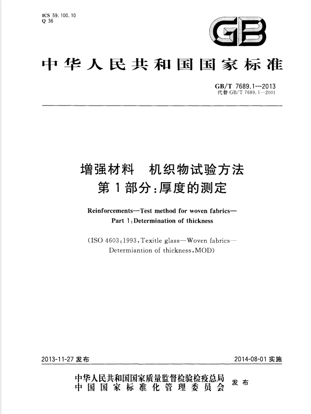 标准介绍:GB/T 7689.1-2013 增强材料 机织物试验方法 第1部分:厚度的测定