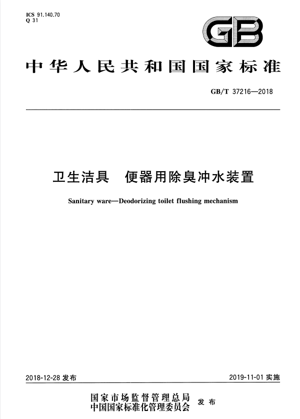 标准介绍:GB/T 37216-2018 卫生洁具 便器用除臭冲水装置