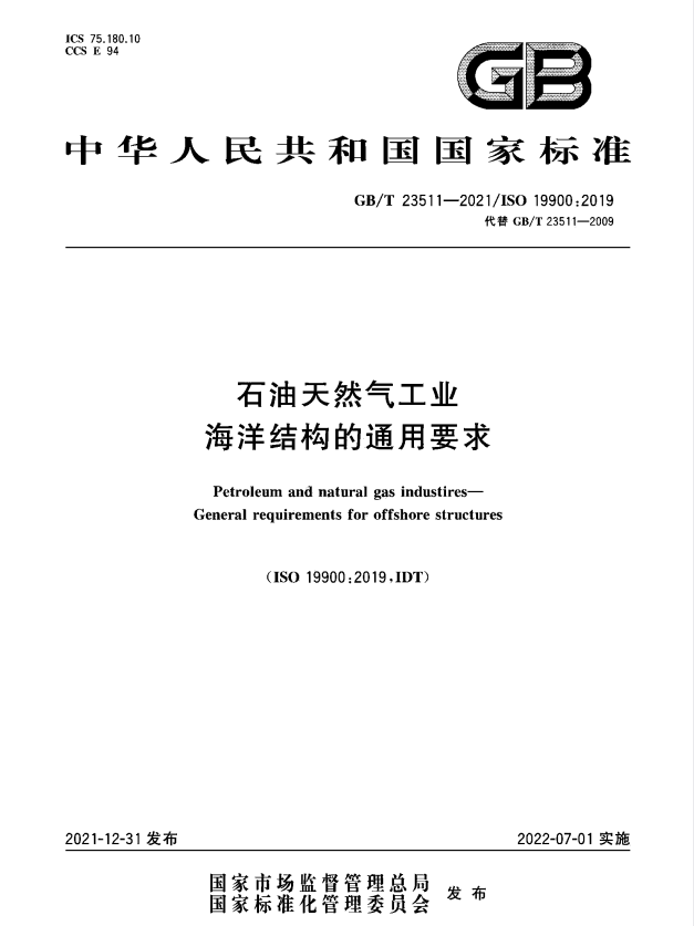标准介绍:GB/T 23511-2021 石油天然气工业 海洋结构的通用要求