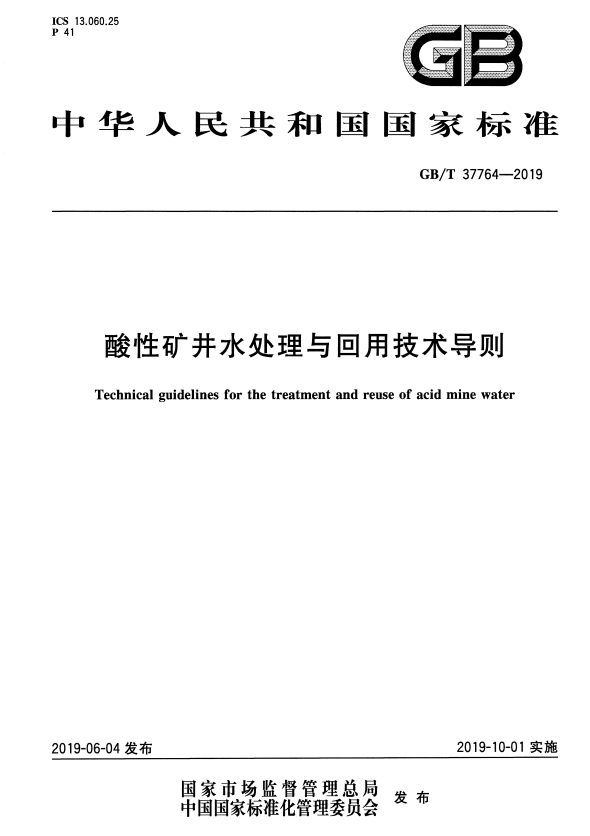标准介绍:GB/T 37764-2019 酸性矿井水处理与回用技术导则