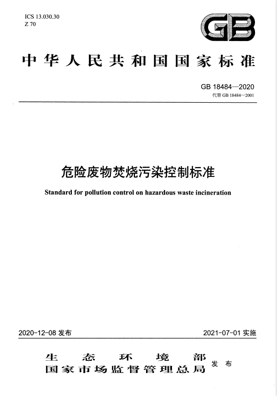 标准介绍:GB 18484-2020 危险废物焚烧污染控制标准