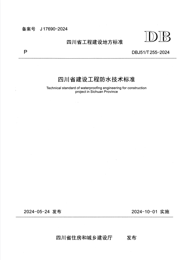 标准介绍:DBJ51/T 255-2024 四川省建设工程防水技术标准