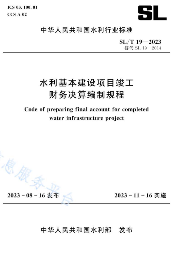 标准介绍:SL/T 19-2023 水利基本建设项目竣工财务决算编制规程
